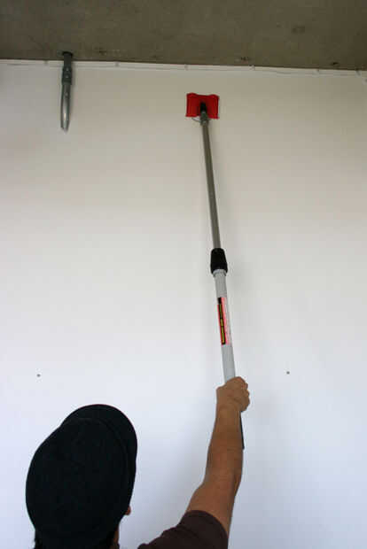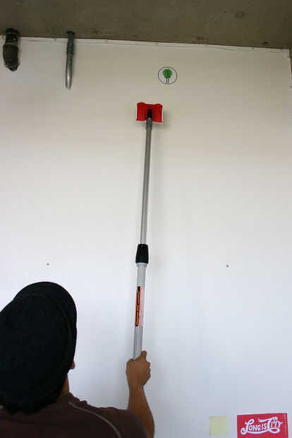 -Cuando llega a la etiqueta engomada de la pared y tiene un contacto sólido, seguir presionando para que la orilladora se mueve hacia arriba a lo largo de la pared.