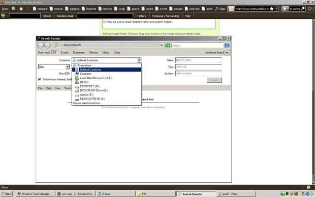 Directo a buscar el disco del ipod. Debe tener una carta y luego decir "apple ipod usb" o algo así junto a él en la lista de lugares para buscar. También se podría decir el nombre le gavr el ipod. Ver la segunda imagen para la vista vista. Mi ipod se llama resonanteye.