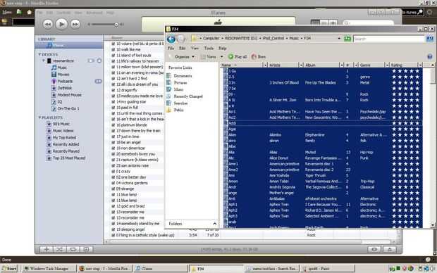 ir a "ipod control" > "música" > y abra las carpetas ahí. Hacer esta carpeta por carpeta ya que mi ipod es de 160G, y hacerlo a la vez bloquea itunes (que es un programa pésimo y lo uso sólo para esto: prefiero mediamonkey).
