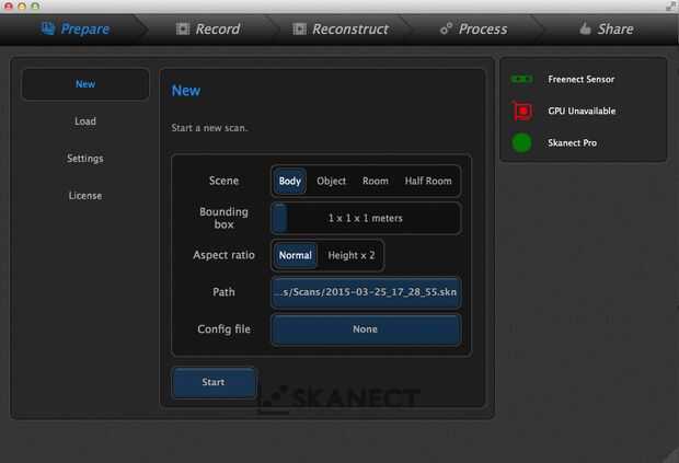 Entonces, usted necesitará el programa de digitalización 3D. También se necesita un mac. Es posible que funcione en Windows 8, pero no ha sido trabajando para mí por alguna razón. Puede obtener la versión Pro de Skanect (el programa de digitalización 3D) por $130, o utilizar la versión gratuita. Desafortunadamente, realmente no puede exportar con la versión gratuita, si desea utilizar el escaneo 3D va a necesitar la versión completa.