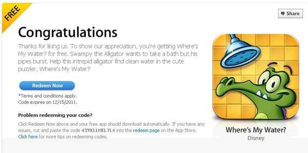 Una vez su propia página, te pedirá que guste. Después de que le gustaron, prensa obtener mi App gratuita. Presentará una nueva página. Pulse redimir ahora y que va a hacer una descarga automática a iTunes.