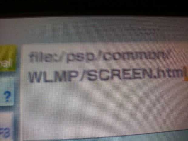 A continuación, haga clic en dirección y escriba FILE:/PSP/COMMON/WLPM/SCREEN. HTML exactamente.
