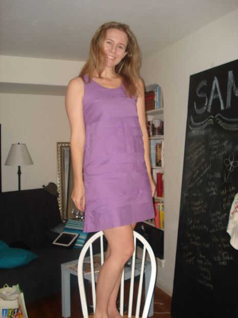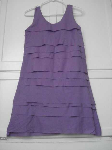de un rato he estado mirando series de vestido de fiesta de Penny francés de conexión (ver segunda foto), pero incluso usados es camino fuera de mi presupuesto. Con alguna tela de algodón de descuento púrpura y mi intuición de la costura limitada, pensé que ahora era tan buen tiempo para desafiar mis habilidades de construcción de prendas de vestir. He tenido algunos tropiezos en el camino, pero me gustó el producto final tanto ya he usado dos veces (y que menos de una semana de edad).