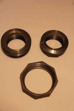 Esto estaba roscada en un extremo y atado a un extremo de una Unión de 2 1/2" acero fotografiado abajo.