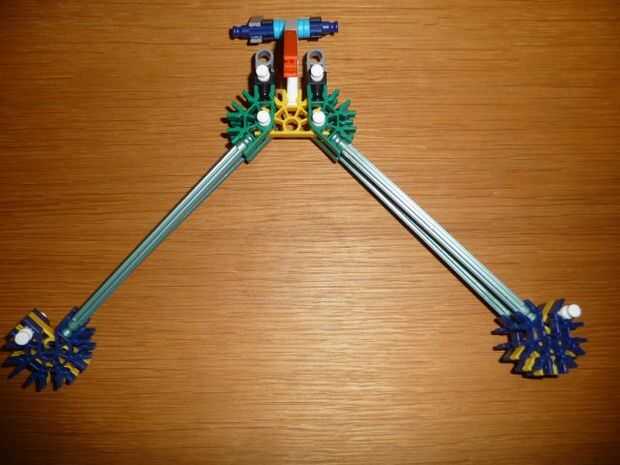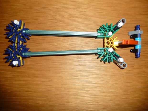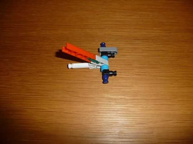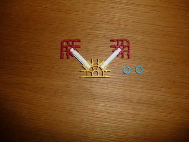 esta es el arma más poderosa de K'NEX creo que porque puede perforar 2 cerveza o COLA puede y destruir disco compacto fácilmente debido a la muy fuerte 4 gomas (yo uso 2 ligas diferentes) también incluye una gran revista para 5 K'NEX largo gris afila