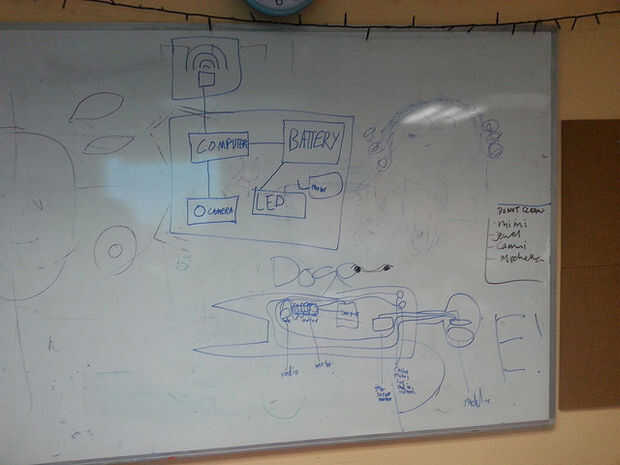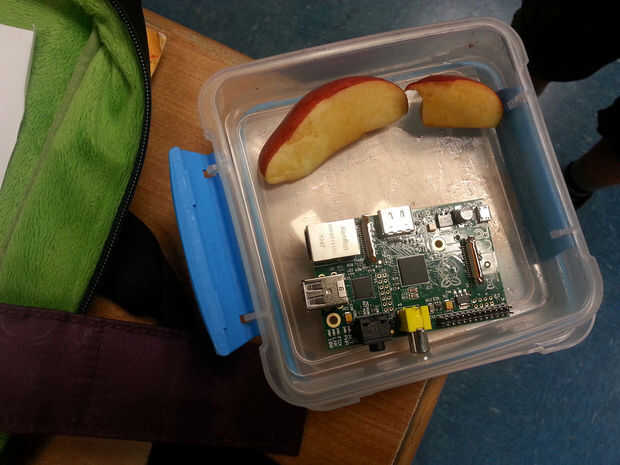 Atamos una lonchera en la cima de la cabina (tornillo + pegamento caliente) por lo que mantendría el Pi de la frambuesa, la batería externa del teléfono móvil, el cable USB que conecta el Pi con la webcam.