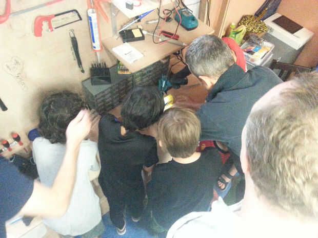 Los padres también ayudó en la construcción, entrada de ideas, trabajo mano, nos ayudó con la logística, compra de piezas, transporte, alimentos.
