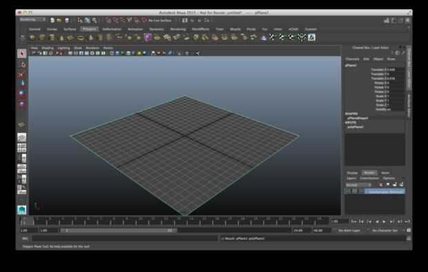Luego coloque dos objetos de la escena. La forma más rápida de hacerlo es hacer clic en la Ficha del polígono de la plataforma y la creación de primitivas de una pareja. Aquí he hecho un plano y un cubo, centrado en el origen.