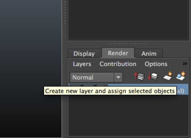 Una vez que tengas la caja de canal / Editor de capa abierta, haga clic en el icono "crear nueva capa y asignar objetos seleccionados". Este icono es el icono más adecuado en la sección Editor de capa. Su un poco críptica, si usted mueva el ratón sobre los iconos y pausa por un segundo, Maya muestra una descripción de lo que el botón hace.