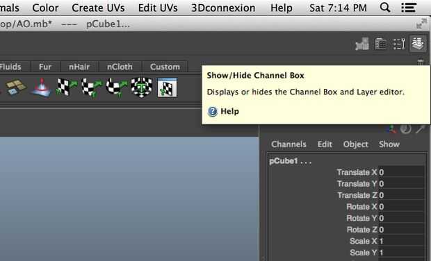 Ahora vamos a crear una nueva capa. Una forma de hacerlo es hacer clic en el canal caja / capa Editor icono situado en la parte superior derecha de la ventana principal de Maya. Hay una foto de él aquí en caso de que te pierdes.