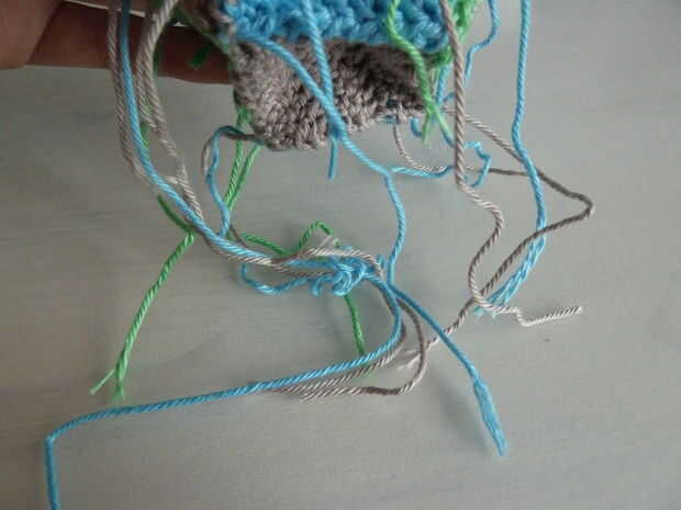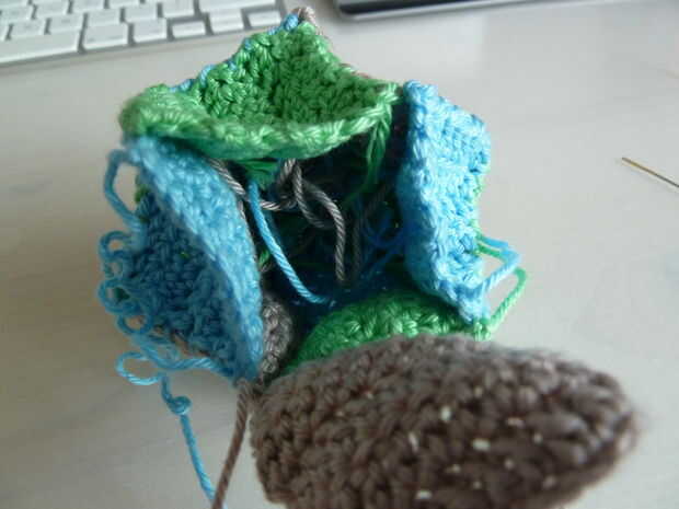 Puede ahora fácilmente acceder al interior del modelo, que es el lugar perfecto para esconderse todos los hilos restantes. Usted puede poner todos ellos allí, excepto los que todavía se necesitan para conectar la pieza final, por lo que los filamentos que rodean esa plaza final.