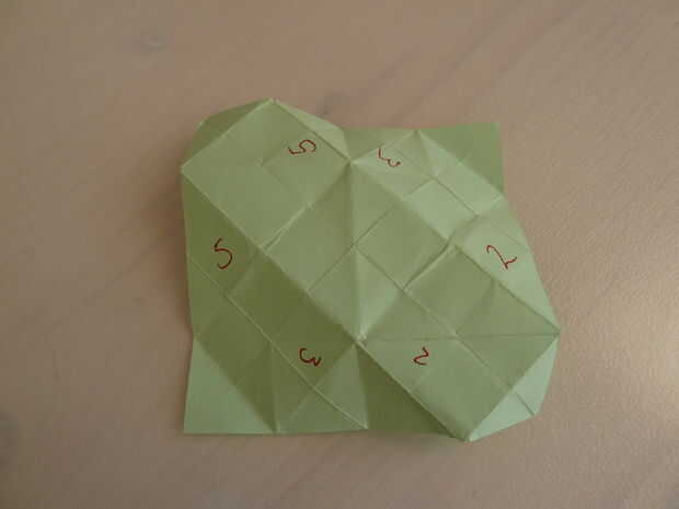 Cuando la forma de la prueba fue completada, he añadido los números, así que cuando se desarrollaba sabría qué imagen para agregar donde. Escribí el número en cada parte de la Plaza, seis veces por metro cuadrado. Se me olvidaba unos pocos, como la sexta 3, visible en la figura 2 de este paso. (o no visible)
