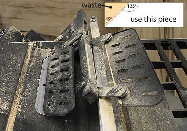 El ángulo entre cada uno de dos piezas de madera contrachapada es de 135 grados. Fijar la Sierra de mesa hasta 45 grados y corte la parte. Residuos, utilice la pieza de 135 grados para unir la madera contrachapada.