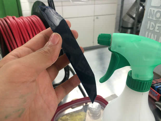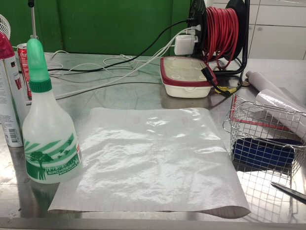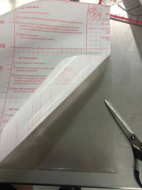 Cortar el papel adhesivo tamaño (Octanis 1 tiene un tamaño de panel de 30 x 30 cm). Retire la hoja adhesiva y póngala a un lado. Coloque el lado no adhesivo sobre una superficie plana. Rocíe las células solares limpiamos con agua destilada para eliminar el polvo.