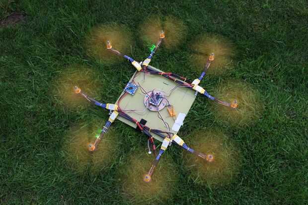 Simple y relativamente barata Octocopter usando todo en uno Pro multiwii controlador de vuelo. Después de la construcción exitosa de mi Hexcopter decidí probar un Octocopter. Esto se construiría utilizando la misma construcción de la hexagonal (y cuádruple) y también utilizaría los mismos motores, de esc y hélices. Me gusta mantenerlo simple y también significa que sólo debe preocuparse uno de repuesto para todos los modelos ya que todos utilizan los mismos bits. A2212 13T 1000KV motores sin escobillas, 30Amp básica Hobby poder (simple) ESC y 10" 4.5 hélices.
