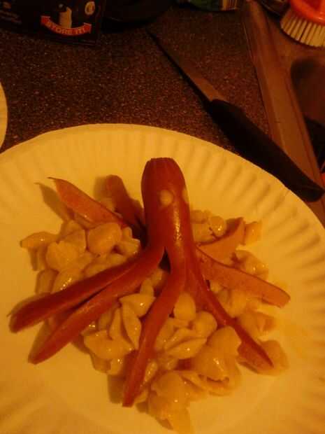 uno de nuestros platos favoritos es Mac n queso y salchichas. Para hacerlo un poco más divertido, he encontrado esta idea en un libro y resultó gran!