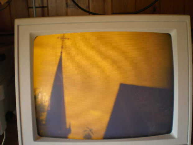 Si tienes suerte, verás un punto brillante en algún lugar de la pantalla. Ajuste los tornillos hasta que el punto luminoso está en el centro, luego tomar el módulo, aro de agarre el PVC dentro del tubo de algunos milímetros más.