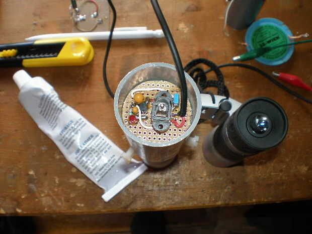 En ese momento la distancia de la CCD a los prismáticos es óptima. Tomar, poner algún adhesivo de silicona en el borde de la perfboard e inserte. Luego inserte el segundo anillo. Hecho.
