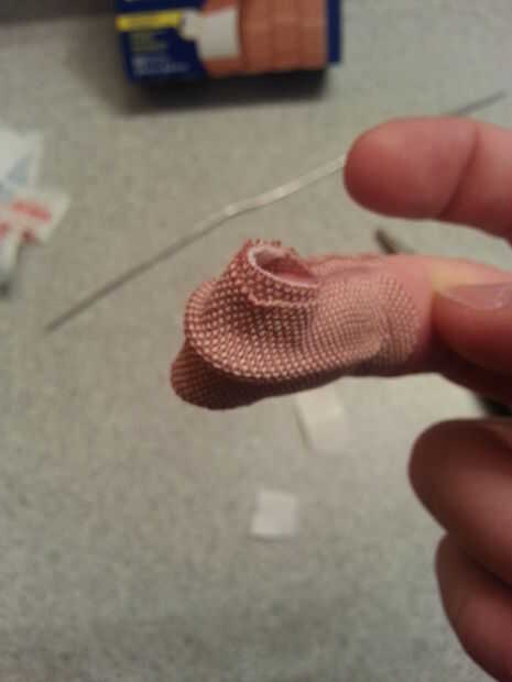 Finalmente, coloque el alambre doblado alrededor de su dedo lesionado y aplicar la segunda venda. Asegúrese de añadir un pequeño espacio entre el alambre y la lesión antes de aplicar la segunda venda.