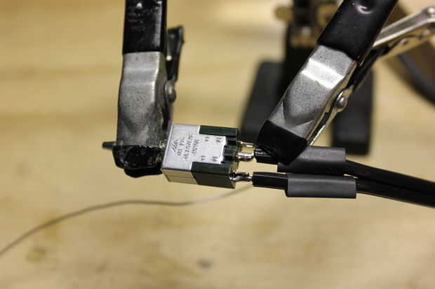 No te olvides de Deslice el tubo del encogimiento en el cable antes de que la soldadura.