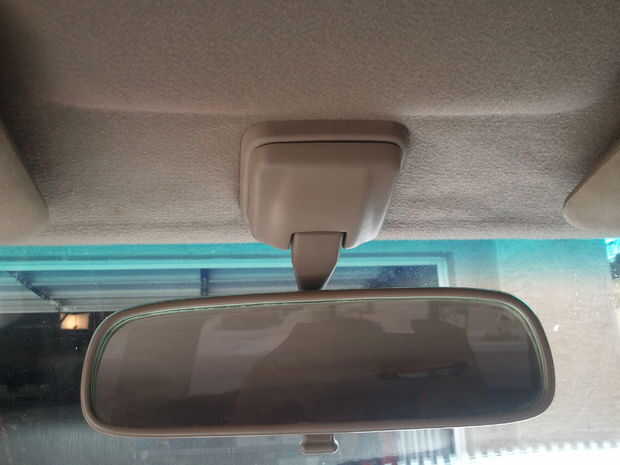 Encontrar un lugar que está oculto, accesible y tiene una superficie de cerca de 5 mm x 2 "x 1".  Elegí en mi espejo retrovisor montaje cubierta que tenía suficiente espacio y puede llegar fácilmente a todos los días.