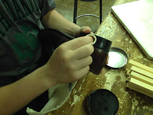 Terminado el esquema, habrá una línea débil donde el corte del talón con el zapato. Con el fin de haga menos sensible, usé un betún negro. Cuando usted frota pulimento de zapato negro en la línea, hará más difícil de ver.