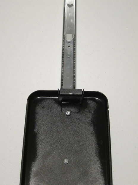 Decidí hacer 3 agujeros en mi caja de la cerradura para sujetar a la diapositiva. Fácilmente puede utilizar más, pero pensé que esto era suficiente. Estoy usando 10-24 X. 50" tornillos de máquina. En realidad usé tornillos de seguridad para esta parte para que la caja de la cerradura no podía quitarse de la diapositiva con un destornillador típico. Esta parte no es necesaria pero pensé que era sólo otro nivel de seguridad y vale la pena incluso.