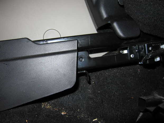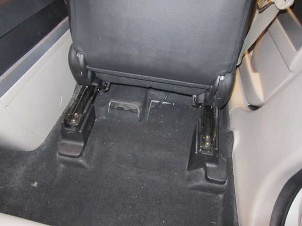 Ahora es momento de determinar el método de fijación al vehículo. Usted puede ser capaz de utilizar algunos tornillos de chapa cabeza plana para sujetar la corredera con el chasis. Puede que necesite levantar la alfombra para hacer esto para asegurarse de que no conecta por nada importante.