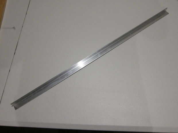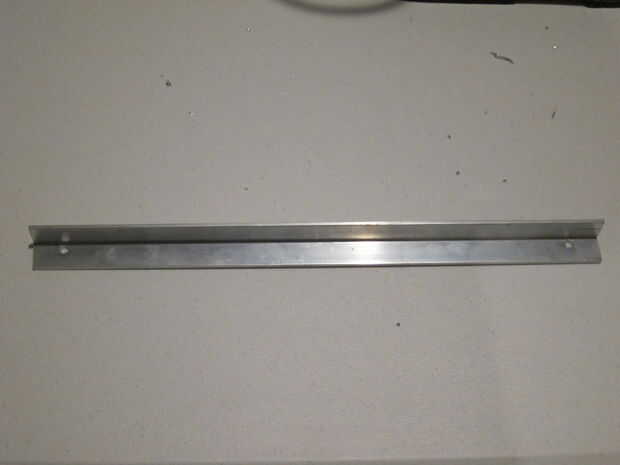 A continuación me decidí a comprar una pieza de aluminio extruido en forma de L. Esto funcionó alrededor de $5 en Lowe. Luego transfiere las dimensiones de la plantilla para el aluminio y corte a la longitud con una sierra para metales y los agujeros perforados.
