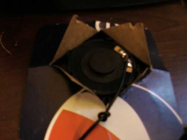 Usted puede optar por cortar completamente el círculo, pero he encontrado que funciona mejor si usted simplemente corta una cruz en su círculo (como se muestra); Estas 'aletas' serán capaces de soportar el altavoz y deben doblarse lo suficiente para que el altavoz se encuentra plana.