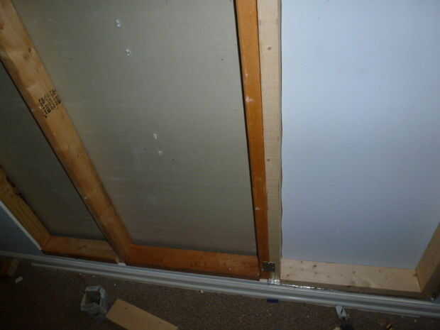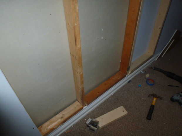 cortar 2 x 4 para caber a través del fondo para cubrir los puntos huecos en la pared.