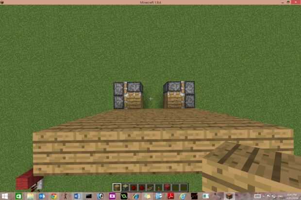 poner los bloques que es lo mismo a la pared en los pistones. y el redstone como lo hice en la foto.