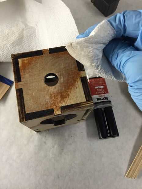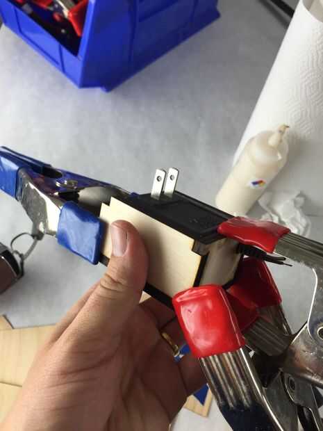 - Me uní a las piezas de madera con pegamento de madera. Hay sólo una forma de que las piezas se acoplarán entre sí, por lo que es fácil llegar a esta parte en el primer intento. El archivo 3D sirve como buena referencia cueste lo que cueste.