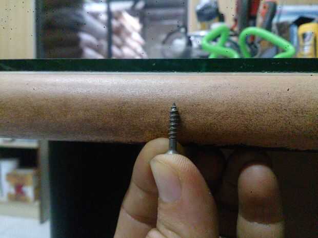 Entonces necesitamos dos tornillos pequeños. Asegúrese de que no son más que el grosor de su mesa.