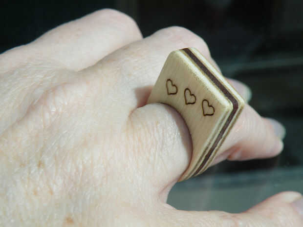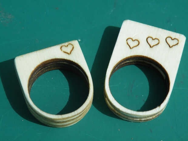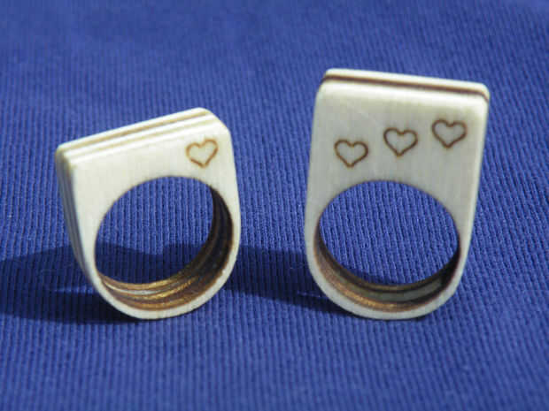 He utilizado contrachapado de chopo y caoba para estos anillos, pero no hay razón por qué no podría usar acrílico para sus versiones, o incluso mezclar y combinar capas de acrílico y madera.