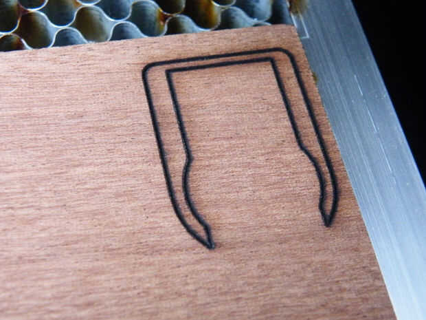 (Interesante observación: la chapa de 1mm caoba tuvo tanto poder para cortar como el capas de chopo de 3mm, y la llamarada en el punto de corte fue mucho más brillante de lo que es para la capa.)