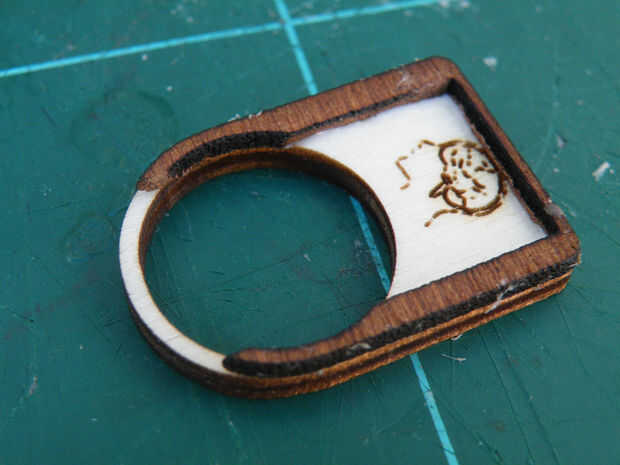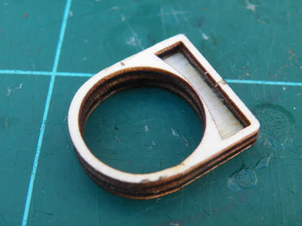 Si usted está haciendo el anillo medallón, sólo debe pegar la capa central a una de las capas externas y deje que seque, antes de poner la cosa secreta en el espacio. Una vez que la primera pega es seco, y llenar el espacio, necesita ser más cuidadoso con el pegado de la segunda, para que no estropear lo que está ocultando.