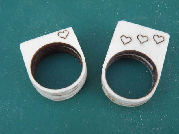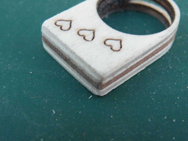 Un lijado ligero, terminando con el grado más fino que tiene, lo liso su anillo y el color de la madera contrachapada y chapa por debajo de los cortes carbonizados. Sin embargo, no ser demasiado brutal en las caras del anillo, o perderás el diseño.