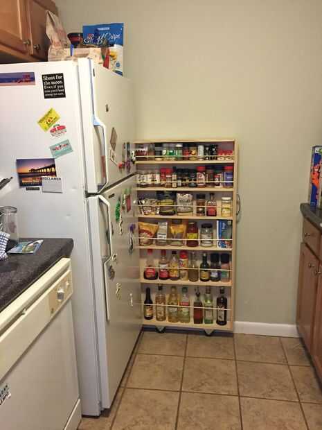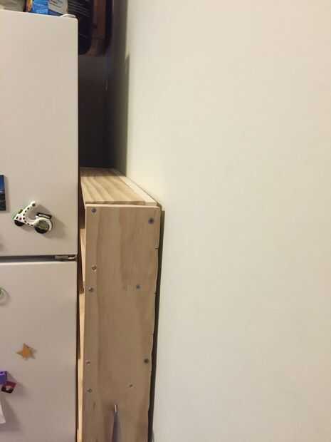 Vivo en un pequeño apartamento con una cocina aún más pequeña que existe en el Departamento de almacenamiento de información. Así que necesitaba un nuevo gabinete, y puesto que no tengo permiso para poner grandes agujeros en las paredes de armarios más, pensé que podría trabajar la brecha de 4.5 pulgadas de mi refrigerador y la pared.