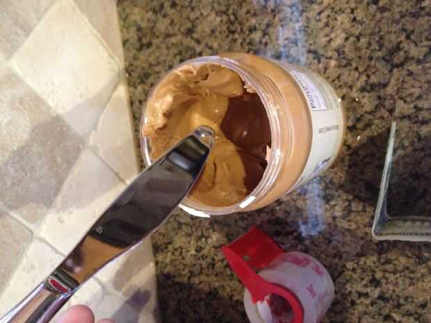 Debe sacar algunos mantequilla de cacahuete de la parte superior si quieres, pero no es necesario.