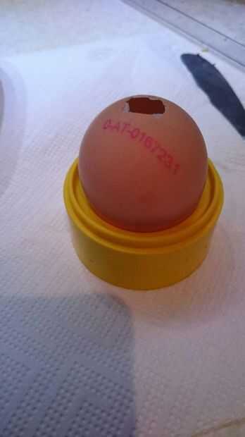 Tome su HUEVERA y coloque el huevo boca abajo en la taza, para que el agujero quede hacia arriba.