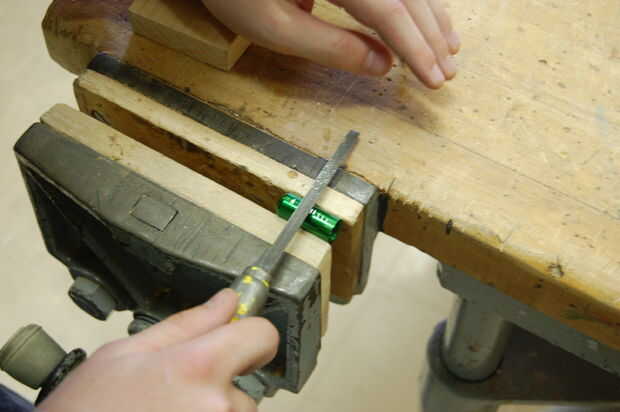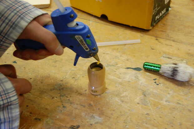 Con el archivo, marcar el cuerpo del bisonte tubo para ayudar a la adherencia del pegamento. Tornillo de cerdas en el cuerpo y luego caliente pegar el cuerpo en el mango.