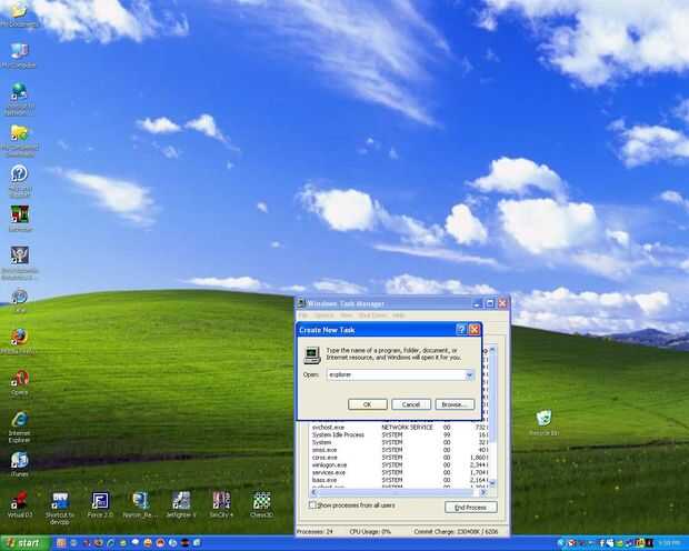 Restaura el explorador, es decir, la barra de tareas y los iconos del escritorio.