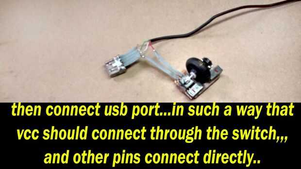 VCC debe conectar a través del interruptor... becoz cuando apagamos el vcc para el pendrive , no funcionará...