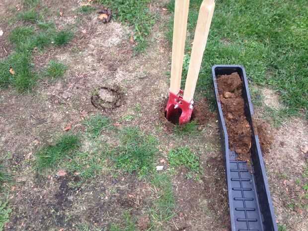 Darle un atasco moderado hacia abajo, pero luego se mueva un respaldo y para romper la tierra. Hacer esto unas cuantas veces antes de molestarse en recuperar la tierra.
