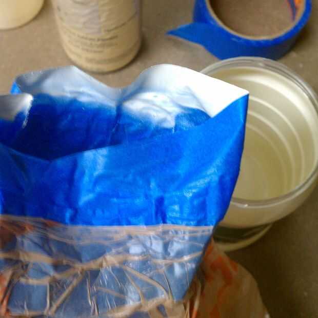 Siguiendo las instrucciones de la pintura, cubrir el interior con una fina capa de pintura. Repita varias veces hasta que no puede ver a través de la jarra. Dependiendo de la pintura, tardará unos días antes si se seca completamente al punto de que puede resistir un uso intensivo. Para retirar la bolsa y cinta, tire a la bolsa como si fuera un calcetín, debe salir sin problema.