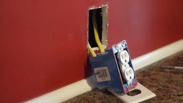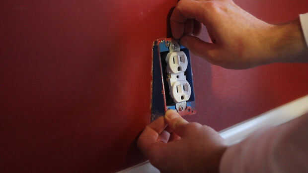 Hay generalmente dos tornillos para instalar/quitar cajas remodelación eléctrica. La foto tiene dos esquinas opuestas. Les Desatornille y retire con cuidado el cuadro de la pared para exponer la cavidad.
