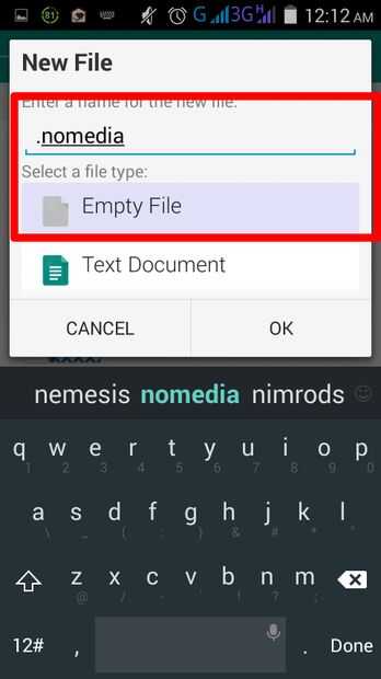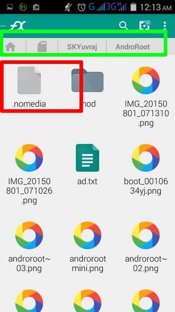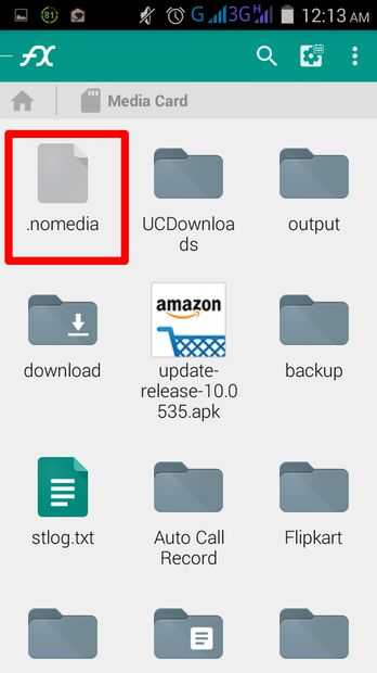 -Simplemente he creado el archivo ".nomedia" con fx file manager app.(screenshot-2,3,4)