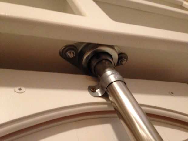 Ahora es necesario instalar las unidades de brida de perno (rodamientos). Marca el eje central de la abertura en la parte superior e inferior del gabinete. Fijar las unidades de brida de perno para cada extremo del tubo. Con una persona dentro del armario y el otro fuera, coloque el panel en la abertura y céntrelo. Alinee el panel con el frente de la abertura. Esto debería ser cómo desea que el panel cuando está cerrada. Una vez en su lugar, haga que la persona en el interior marque orificios para unidades de brida de perno.