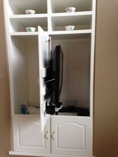 Monte el televisor y cualquier otro componente en la parte trasera del panel. Ser que la TV esté centrado. Asegúrese de que el panel gira libremente, sin objetos golpear el reborde de la abertura. Nota: TV deben ser cerca de polo, como el más lejano sobresale del panel, es más probable que llegará al girar el panel.